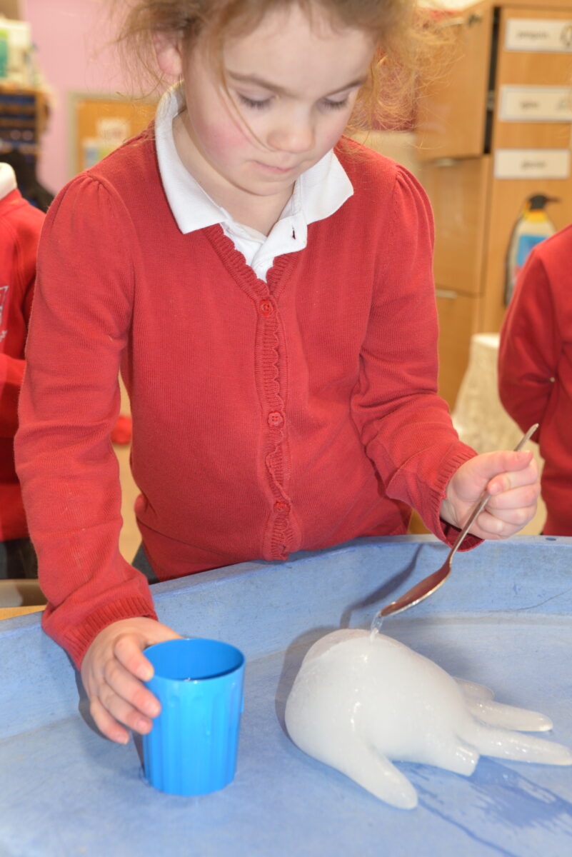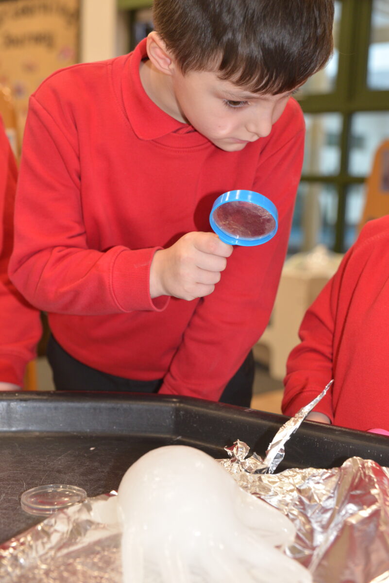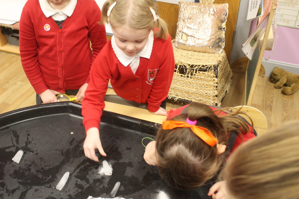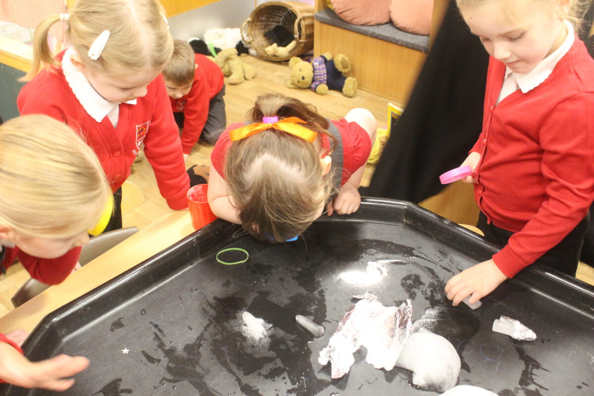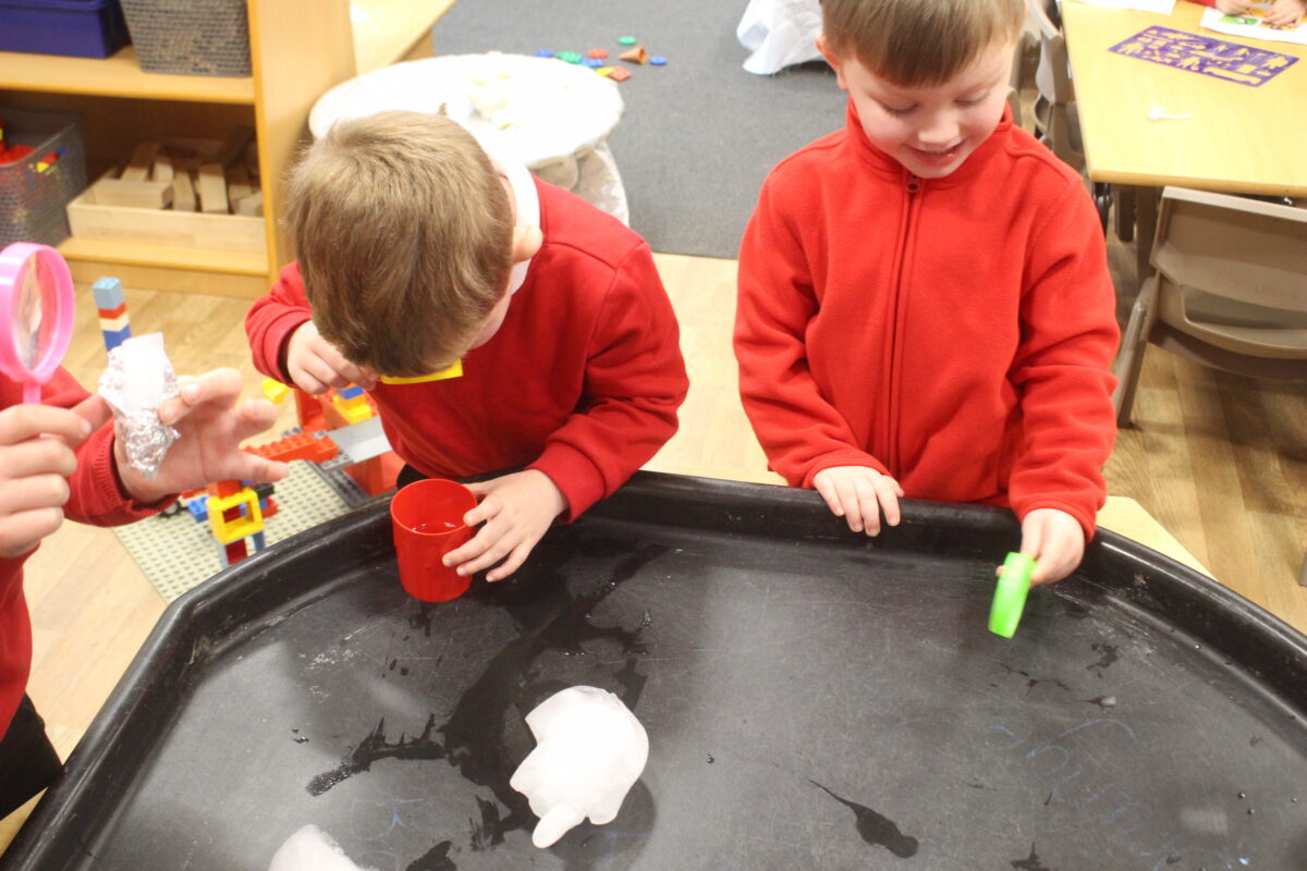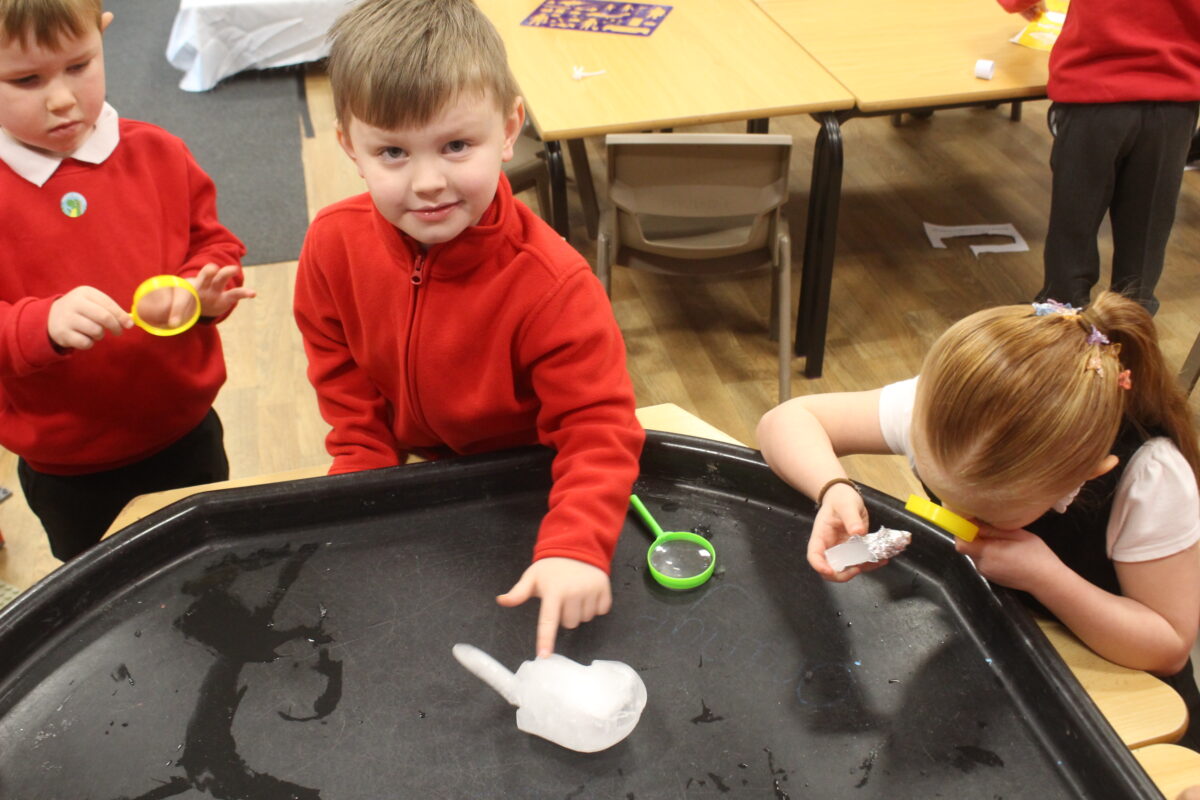 EYFS thoroughly enjoyed their science experiment exploring what would melt ice the fastest. They tested salt, their hands, tin foil, warm water, and simply leaving the ice at room temperature. The children predicted that salt would work the quickest, linking it to how salt is used on roads when it snows. Warm water turned out to be the fastest, closely followed by salt. The children had lots of fun experimenting, making predictions, and talking about their results.
