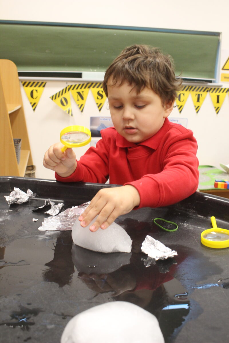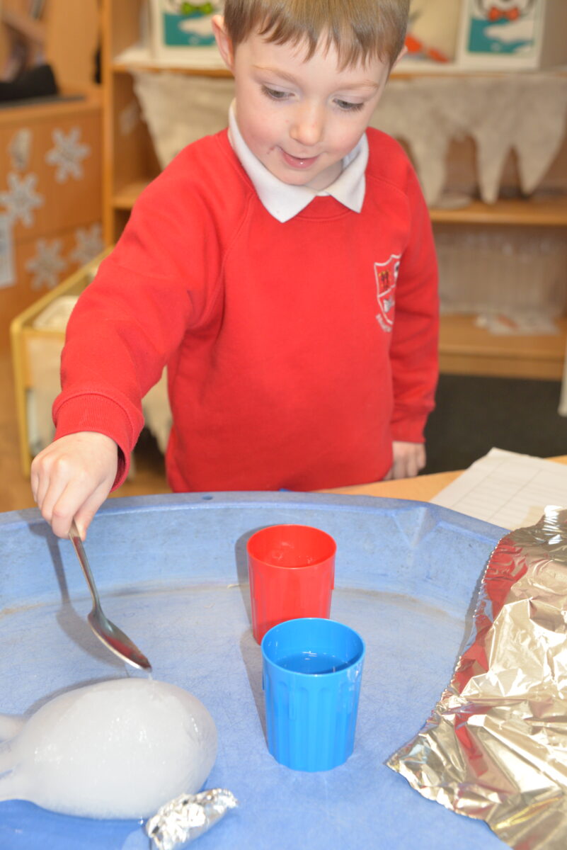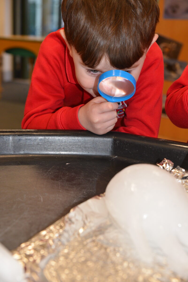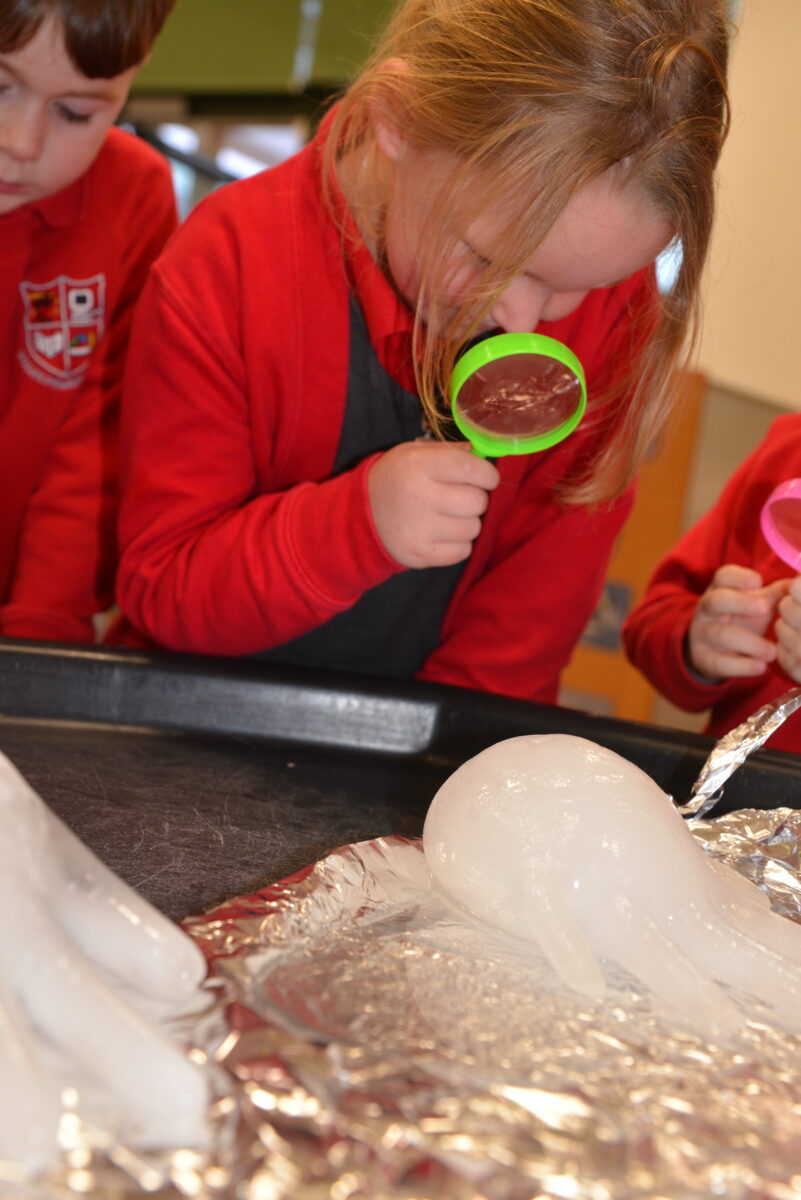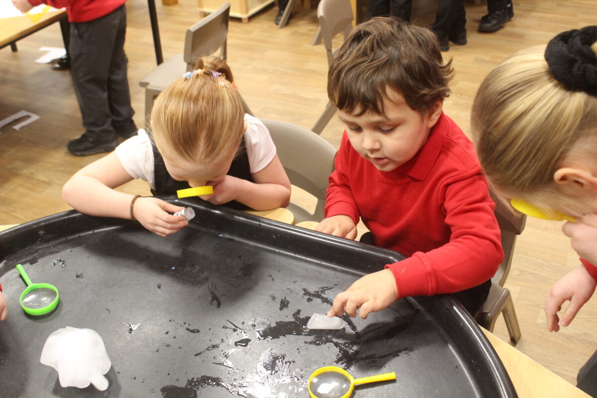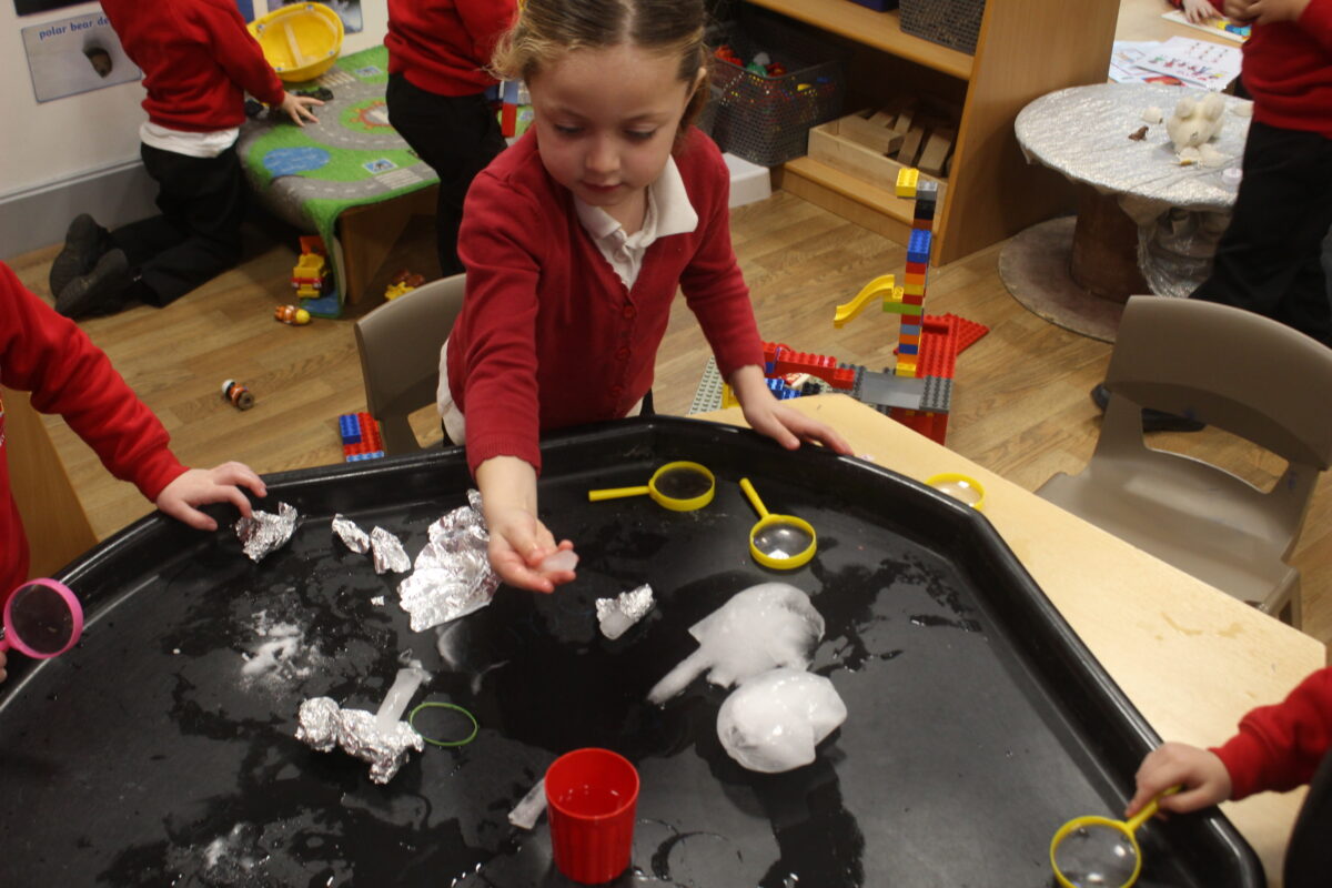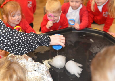 EYFS thoroughly enjoyed their science experiment exploring what would melt ice the fastest. They tested salt, their hands, tin foil, warm water, and simply leaving the ice at room temperature. The children predicted that salt would work the quickest, linking it to how salt is used on roads when it snows. Warm water turned out to be the fastest, closely followed by salt. The children had lots of fun experimenting, making predictions, and talking about their results.