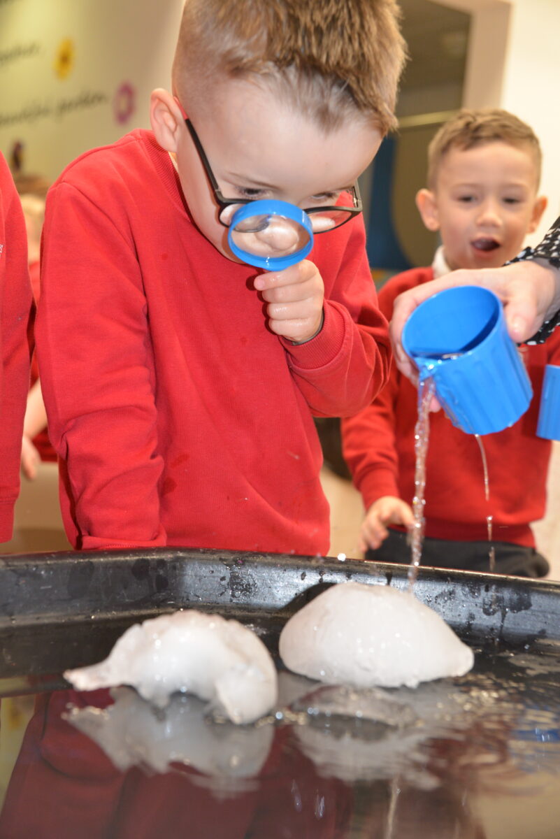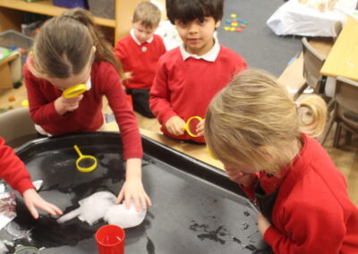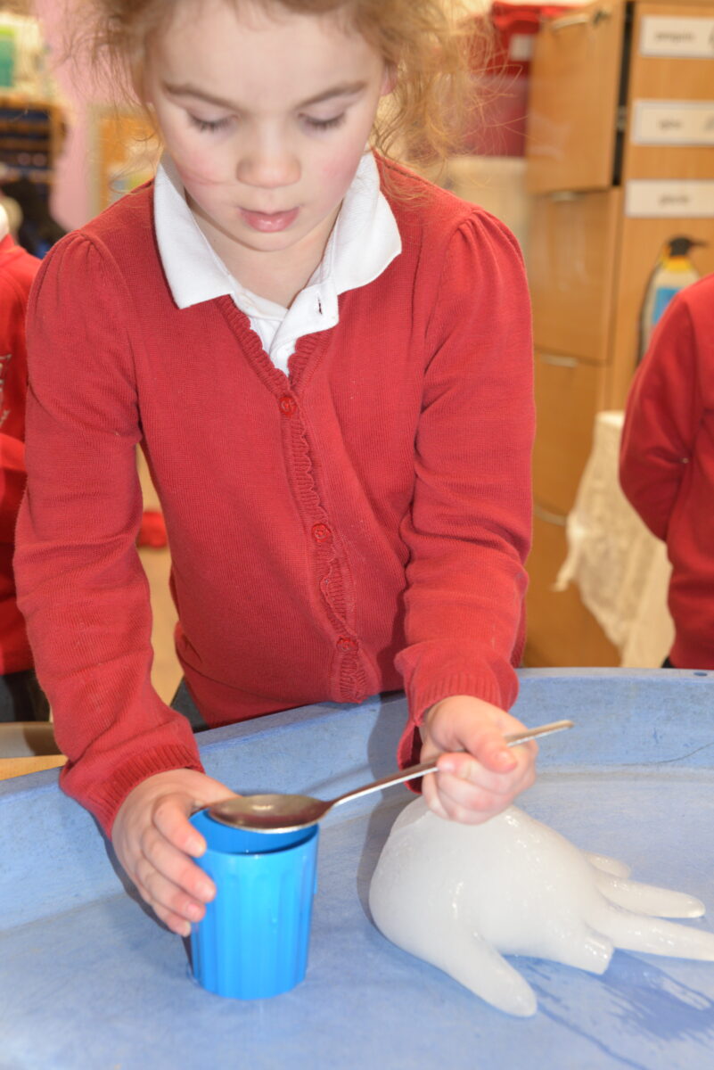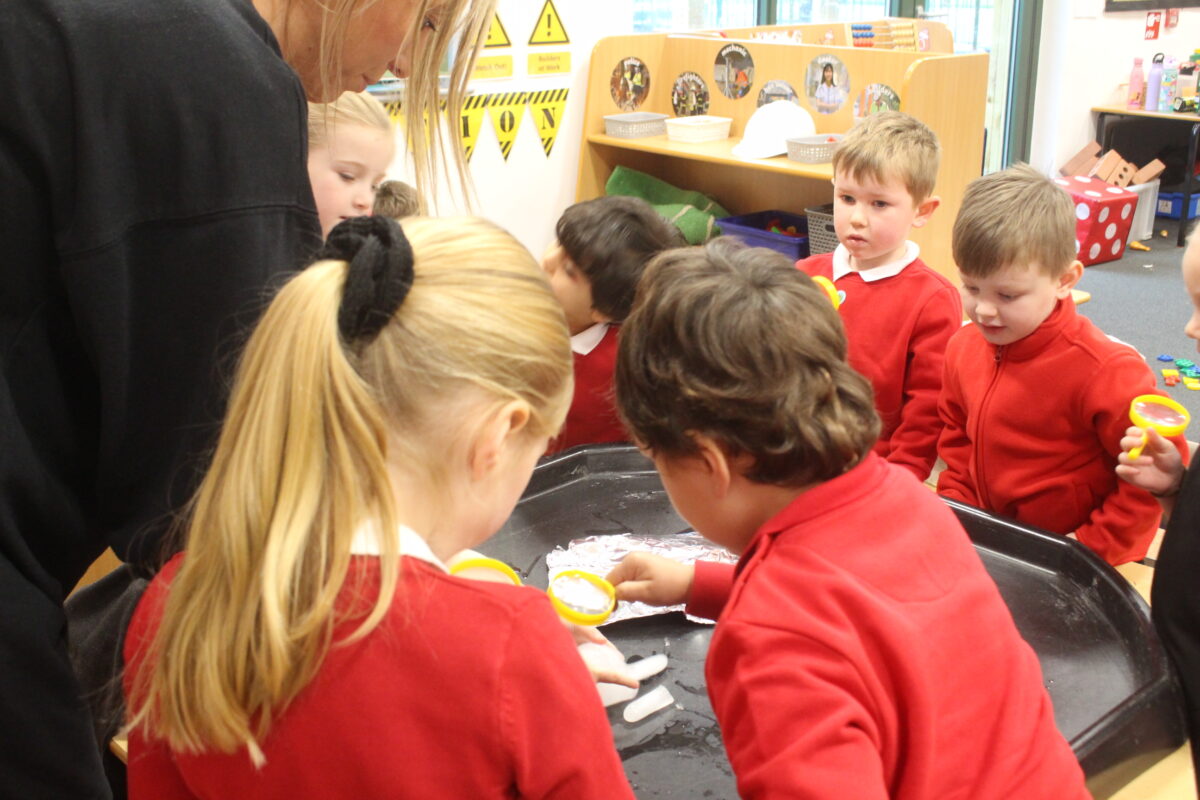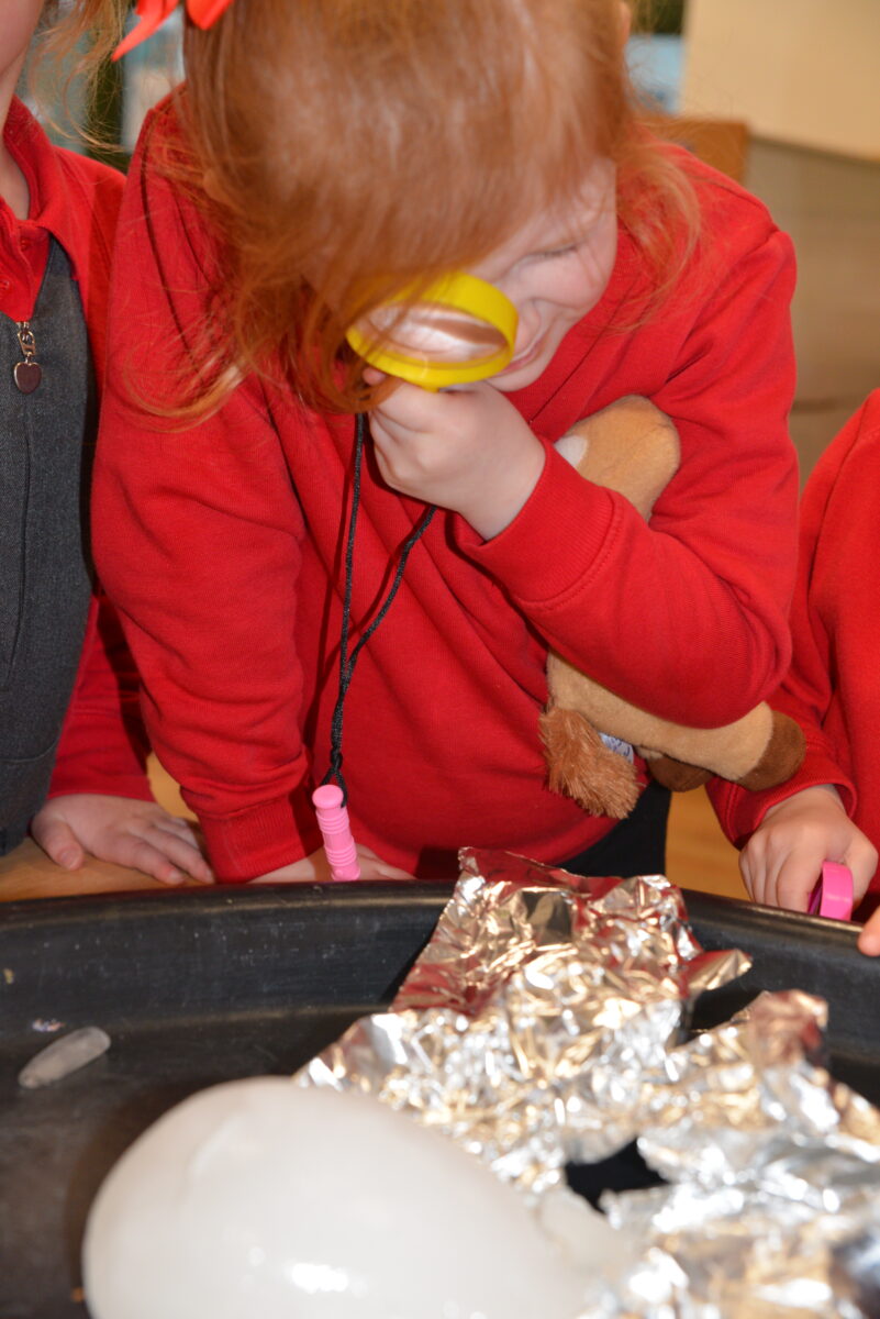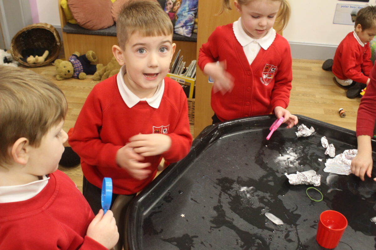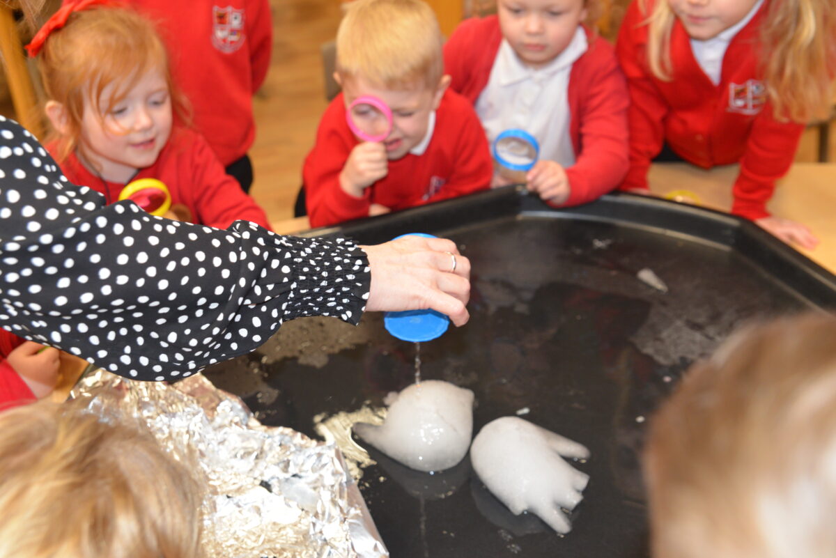 EYFS thoroughly enjoyed their science experiment exploring what would melt ice the fastest. They tested salt, their hands, tin foil, warm water, and simply leaving the ice at room temperature. The children predicted that salt would work the quickest, linking it to how salt is used on roads when it snows. Warm water turned out to be the fastest, closely followed by salt. The children had lots of fun experimenting, making predictions, and talking about their results.