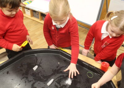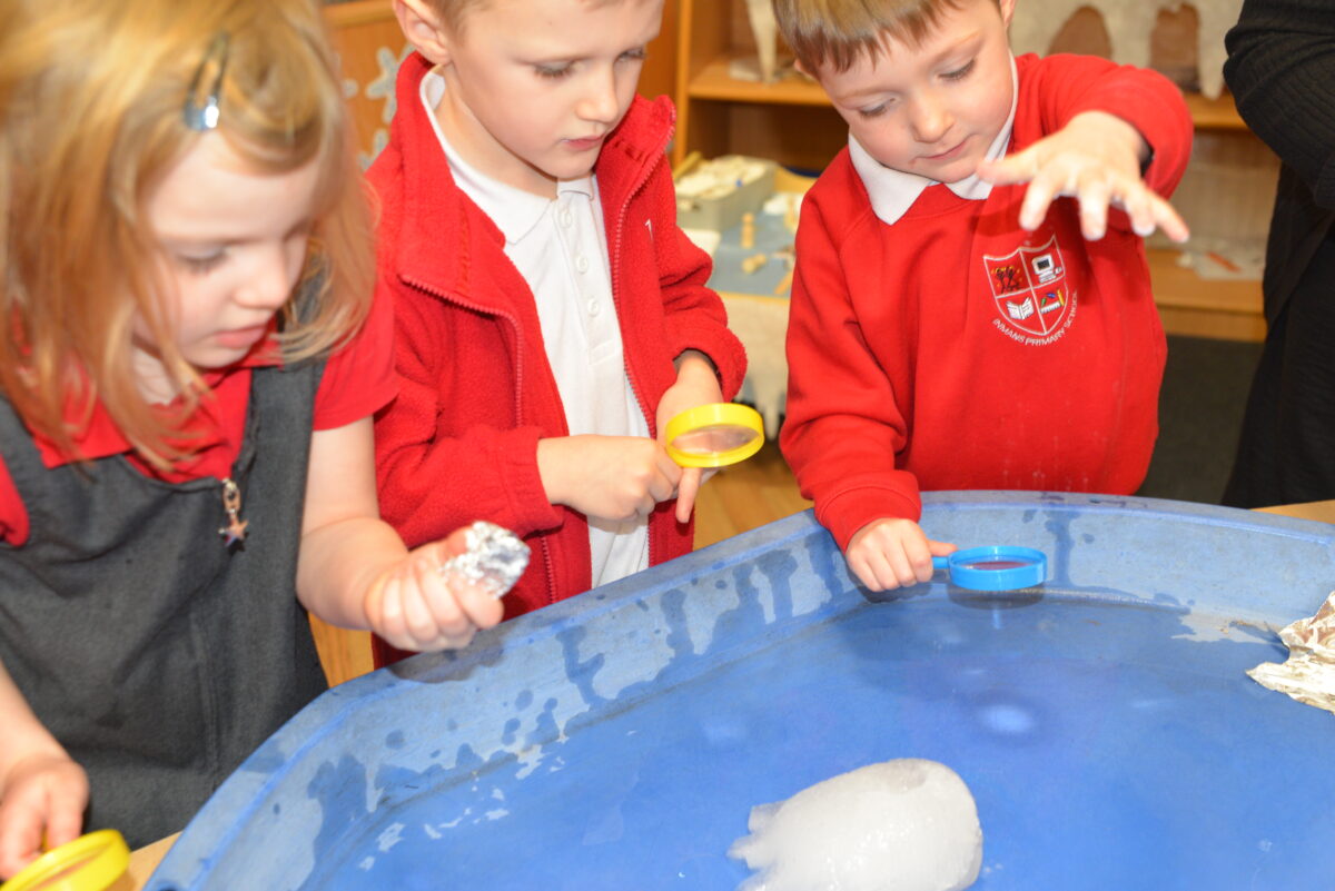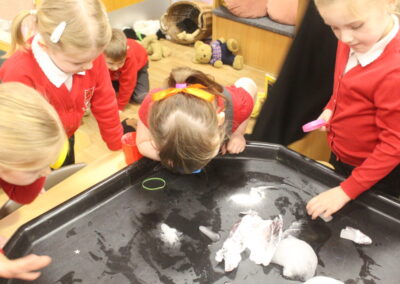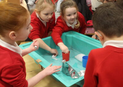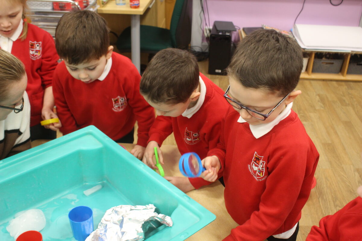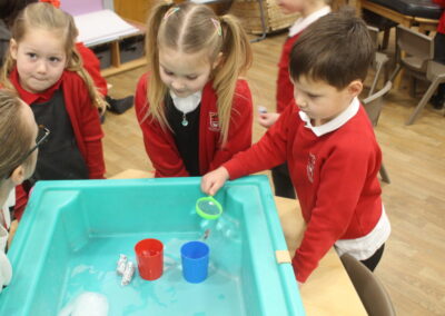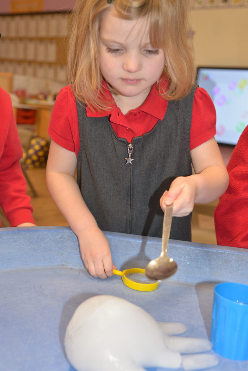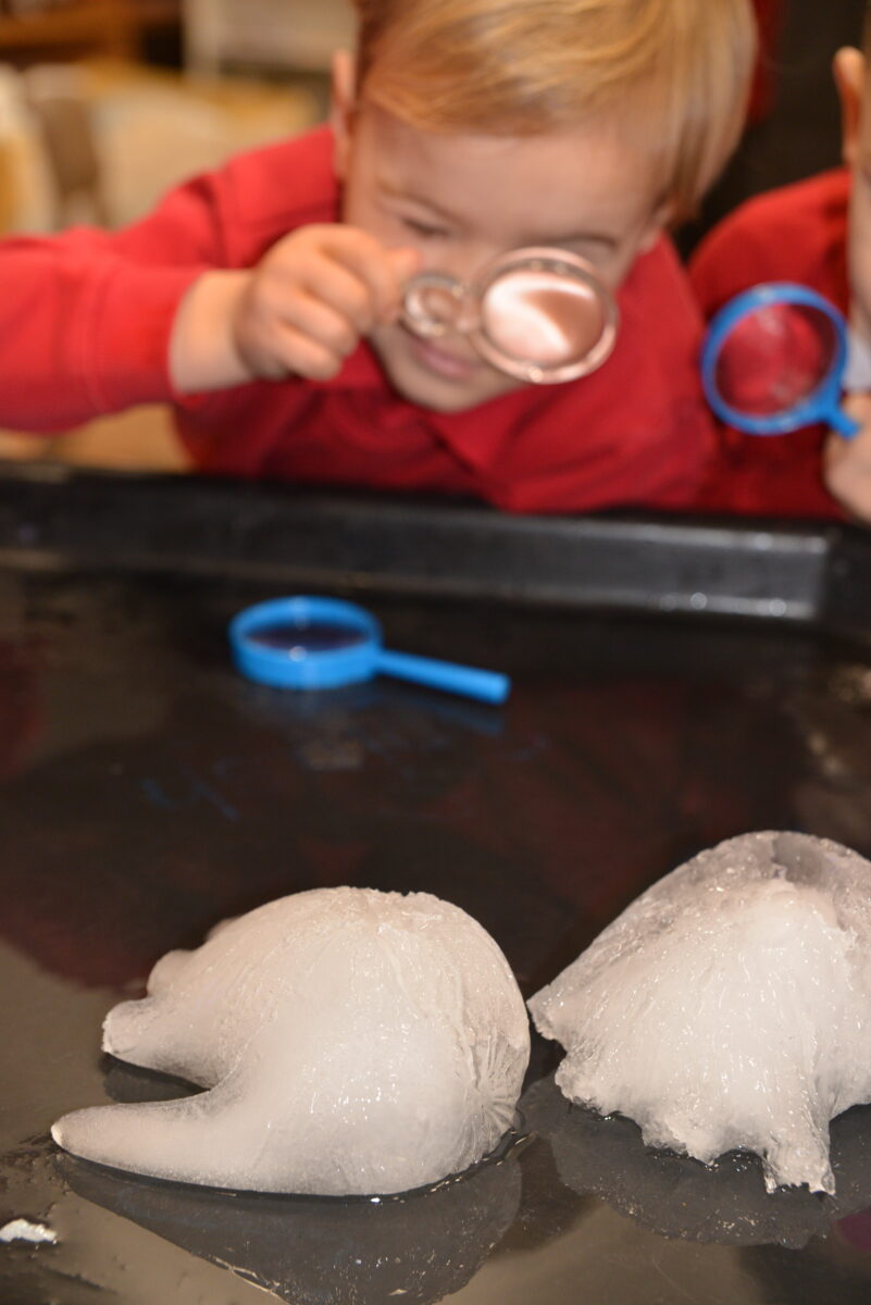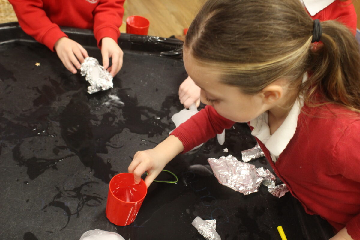 EYFS thoroughly enjoyed their science experiment exploring what would melt ice the fastest. They tested salt, their hands, tin foil, warm water, and simply leaving the ice at room temperature. The children predicted that salt would work the quickest, linking it to how salt is used on roads when it snows. Warm water turned out to be the fastest, closely followed by salt. The children had lots of fun experimenting, making predictions, and talking about their results.