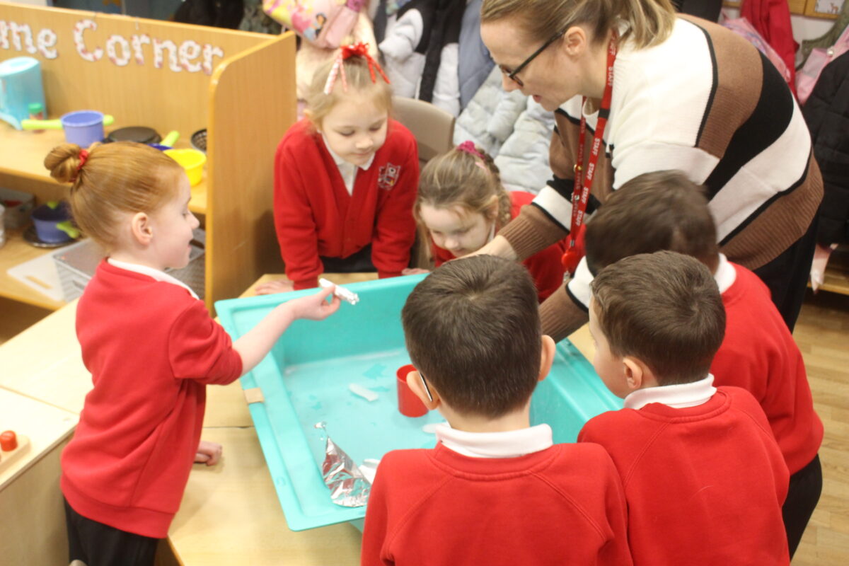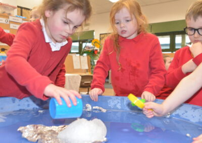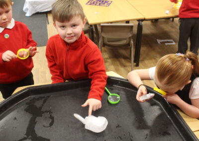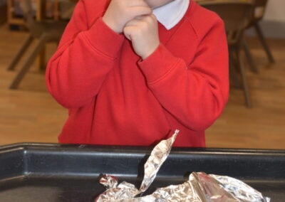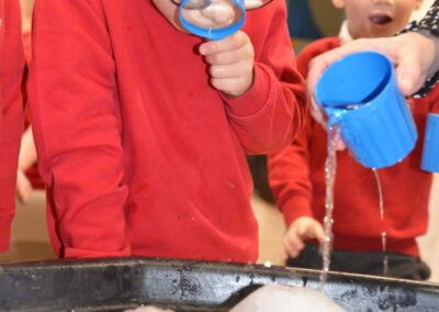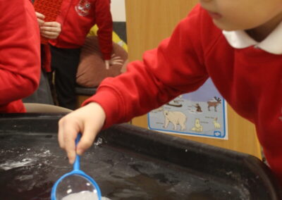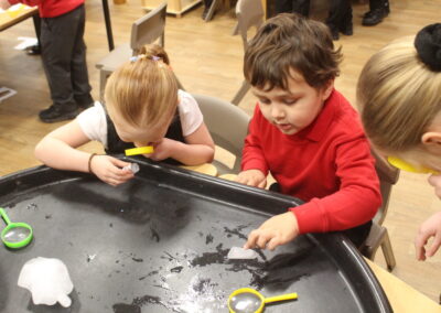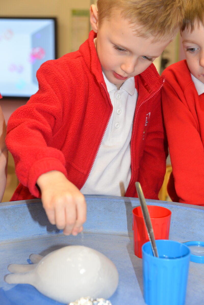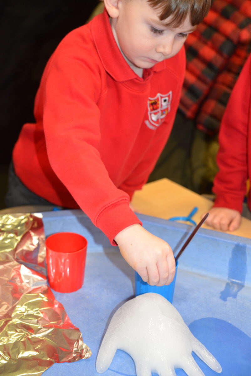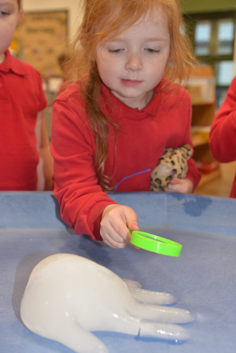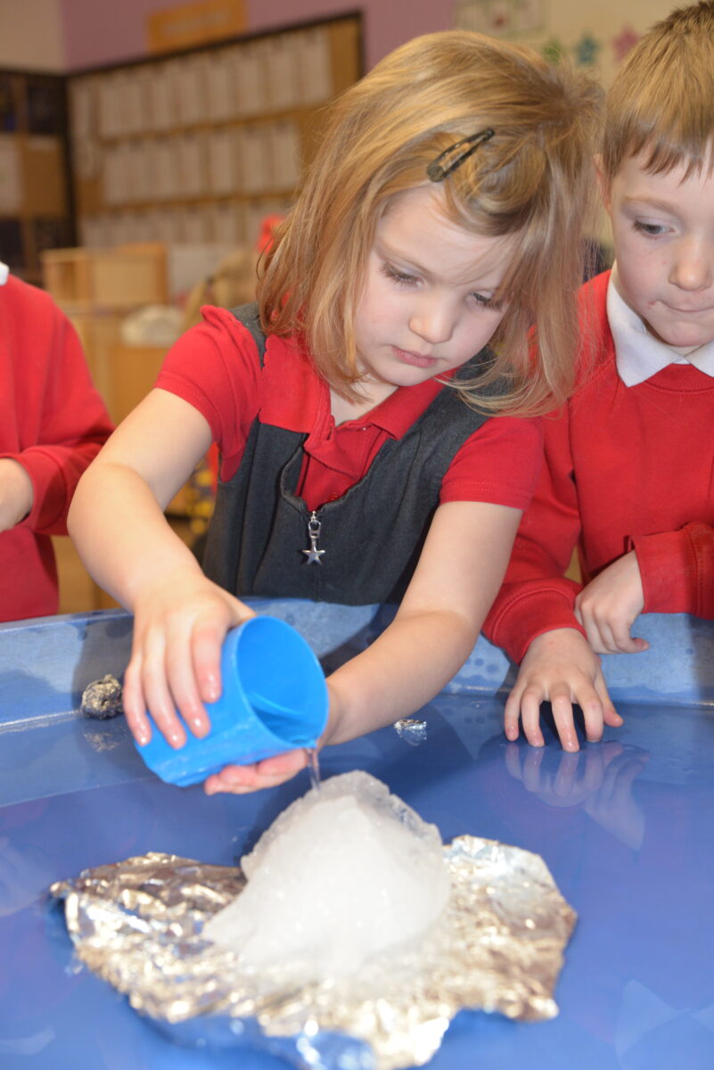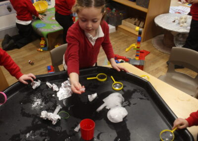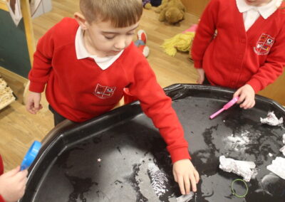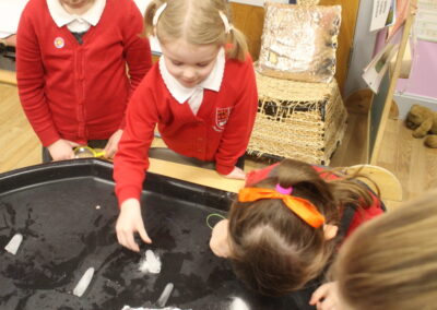 EYFS thoroughly enjoyed their science experiment exploring what would melt ice the fastest. They tested salt, their hands, tin foil, warm water, and simply leaving the ice at room temperature. The children predicted that salt would work the quickest, linking it to how salt is used on roads when it snows. Warm water turned out to be the fastest, closely followed by salt. The children had lots of fun experimenting, making predictions, and talking about their results.