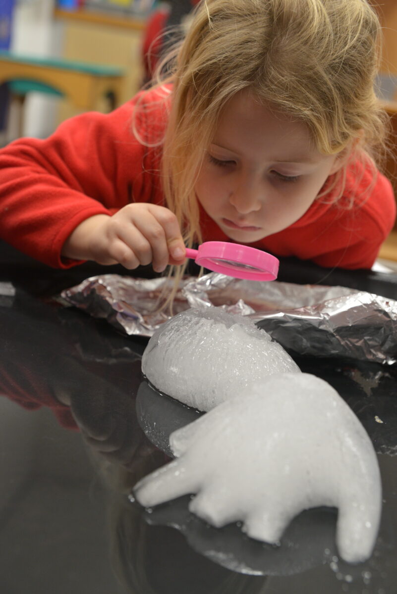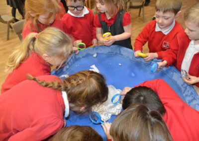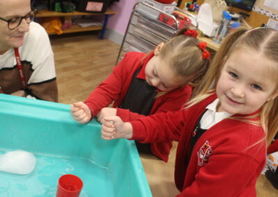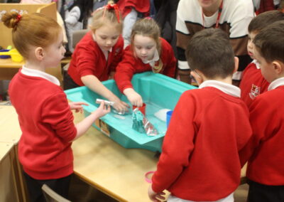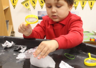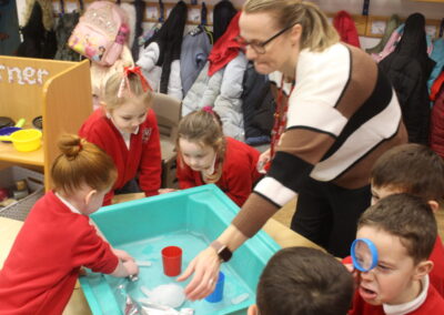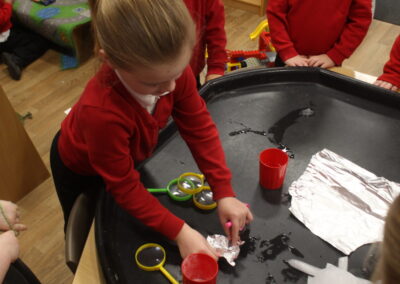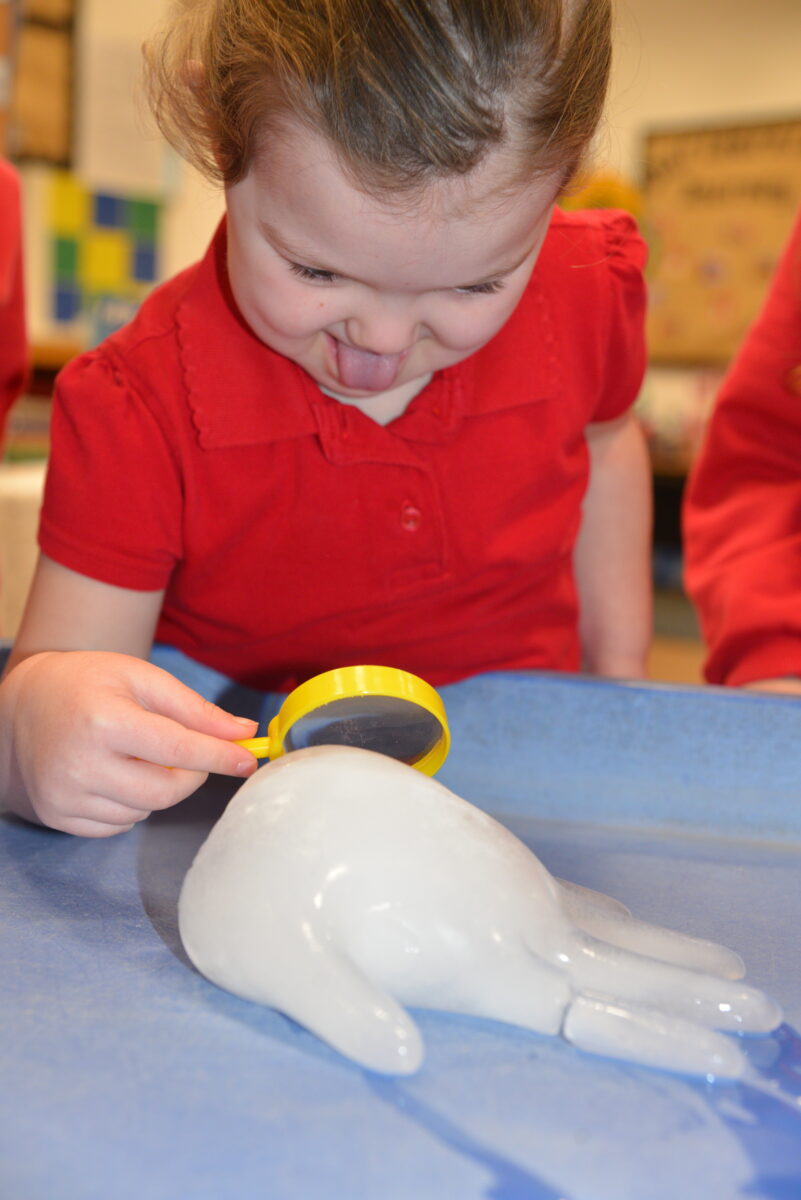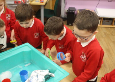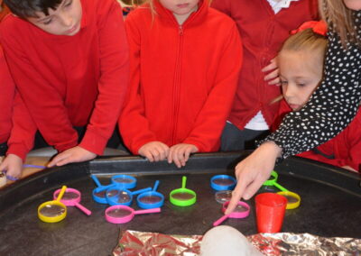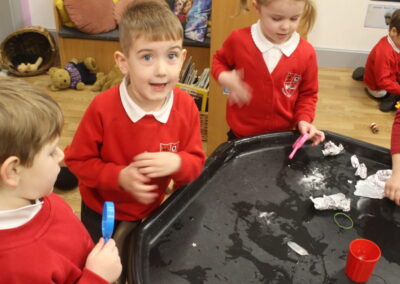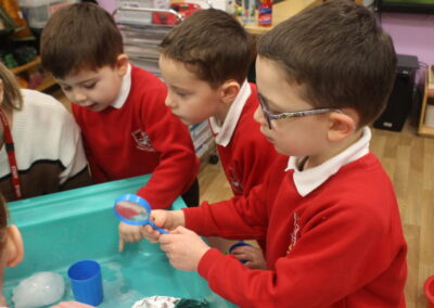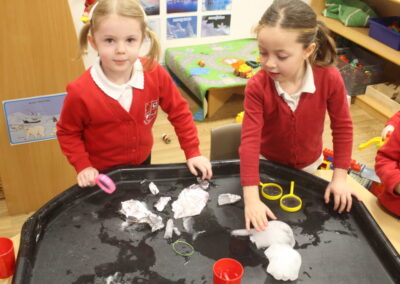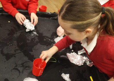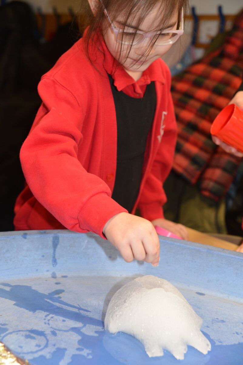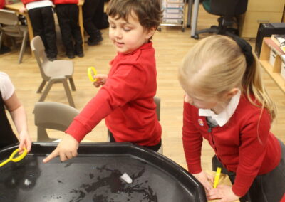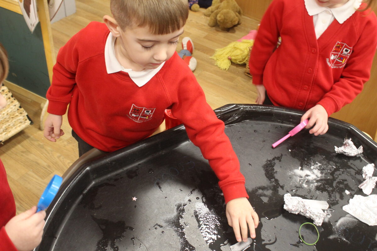 EYFS thoroughly enjoyed their science experiment exploring what would melt ice the fastest. They tested salt, their hands, tin foil, warm water, and simply leaving the ice at room temperature. The children predicted that salt would work the quickest, linking it to how salt is used on roads when it snows. Warm water turned out to be the fastest, closely followed by salt. The children had lots of fun experimenting, making predictions, and talking about their results.