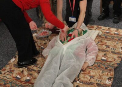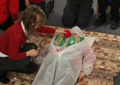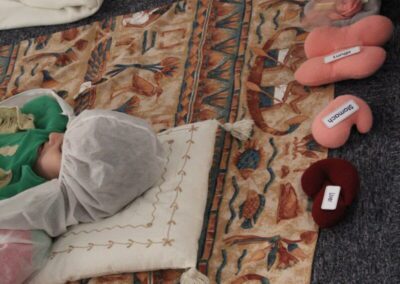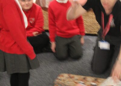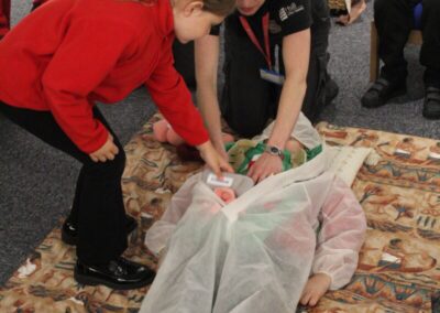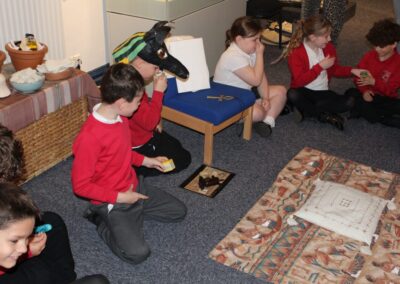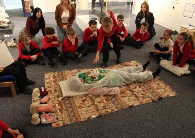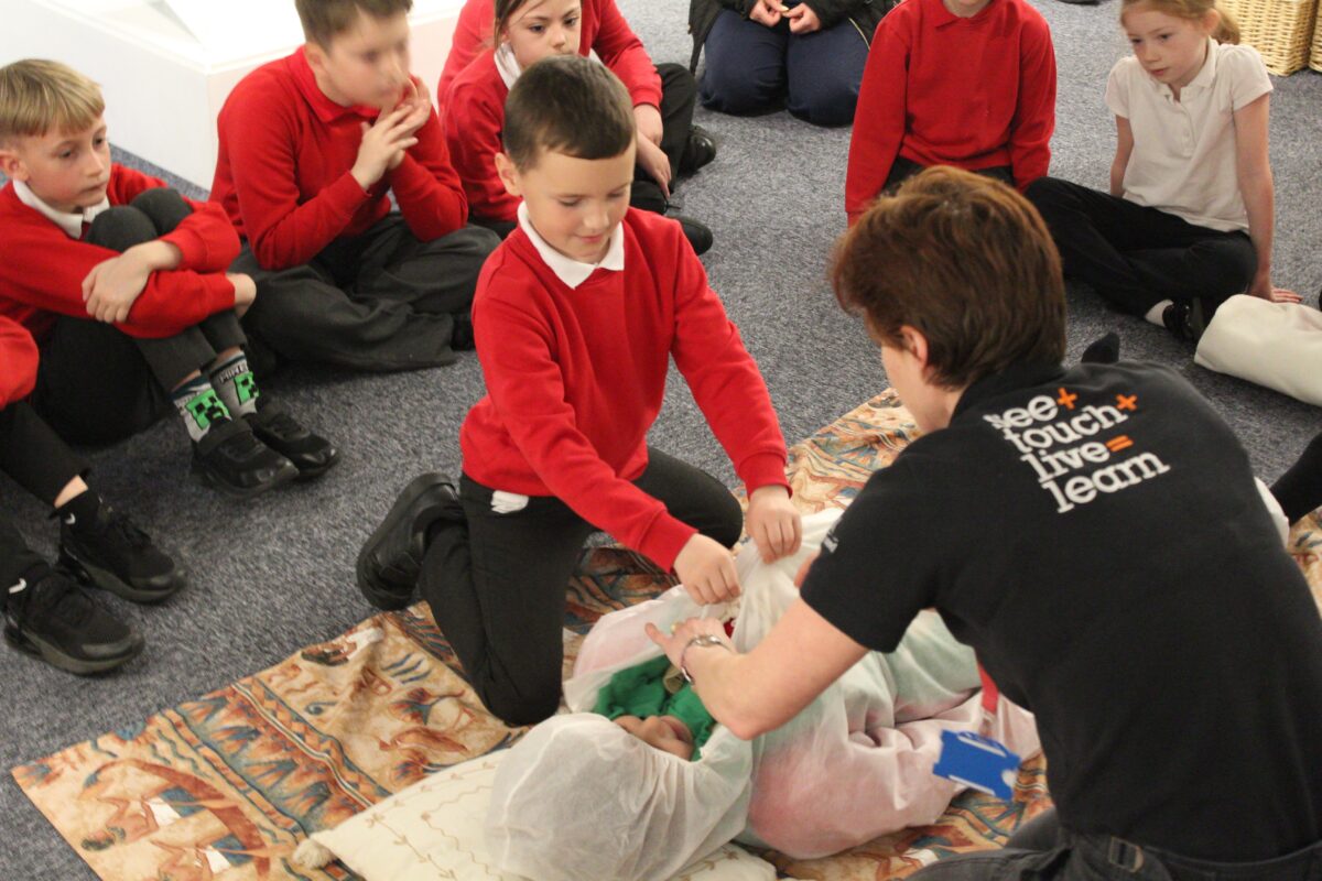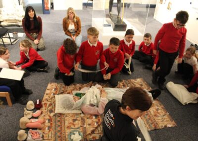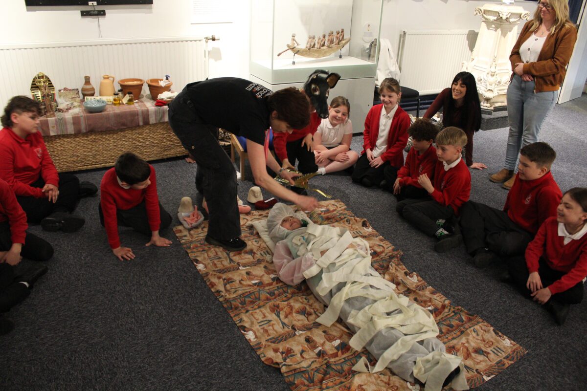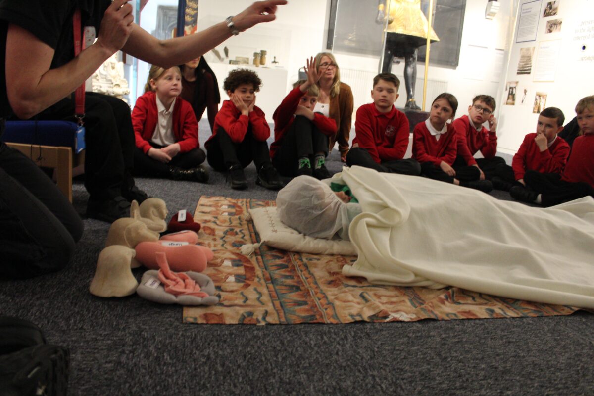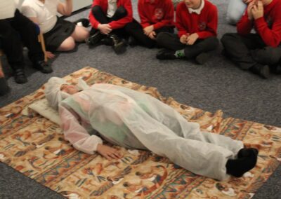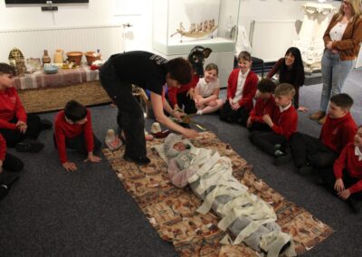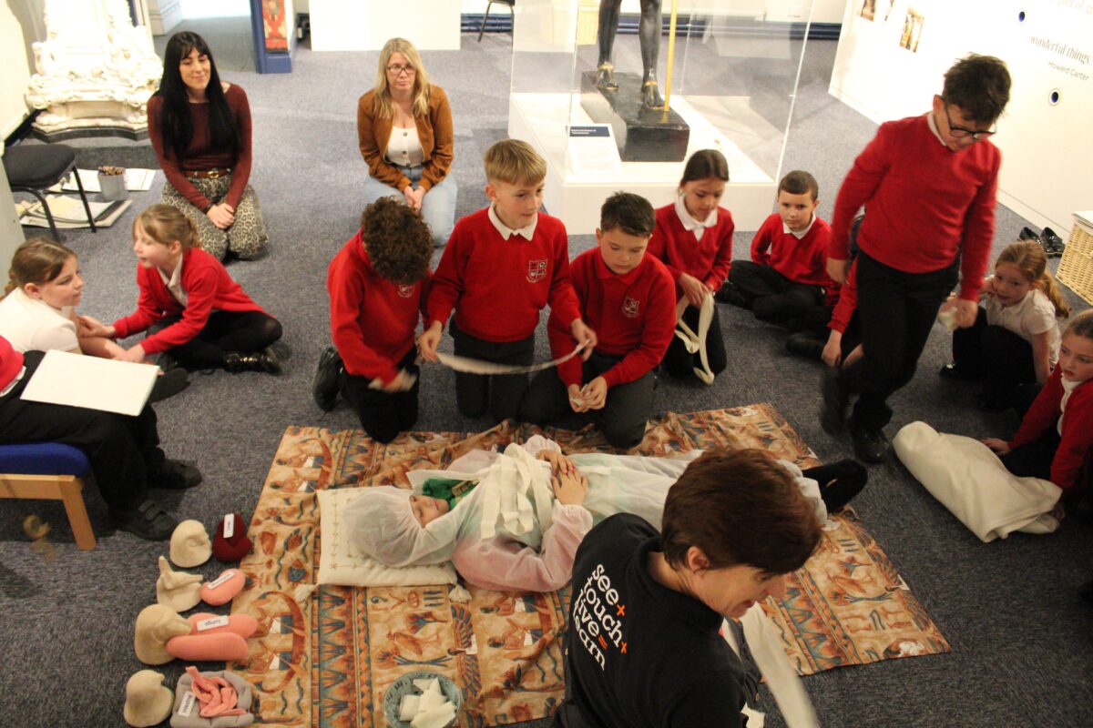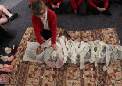 At the Hands on History museum, we experienced the wonders of the artefacts that the archaeologist, Howard Carter, and his team saw when they discovered the tomb of Tutankhamun, handled real and replica Egyptian artefacts and learnt about the real mummy displayed in the museum.  After we had great fun mummifying one of our friends and learning about mummification with the museum staff.