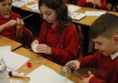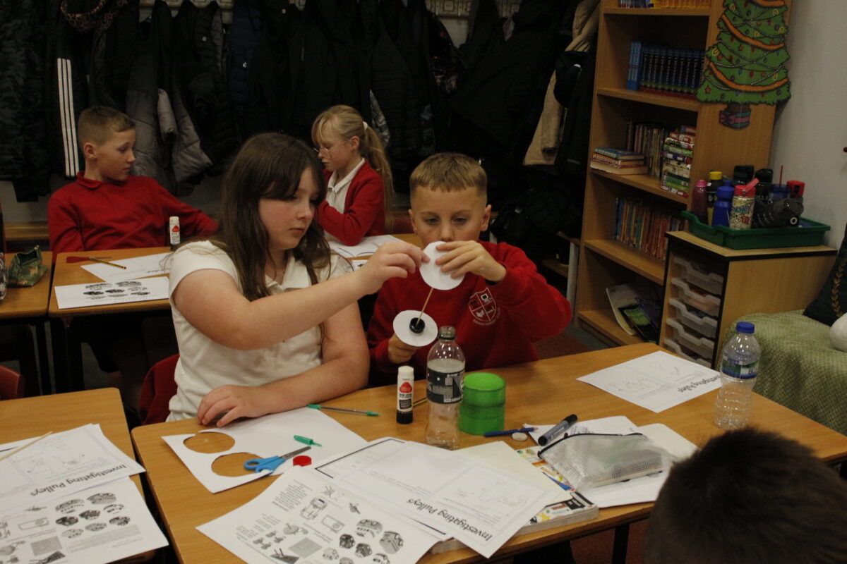 Today marked the start of the autumn year 5 DT project in which the children looked into different types of pulleys and then had a go at creating their own using a plastic bottle, string, card and a skewer!! They made some great mechanisms.